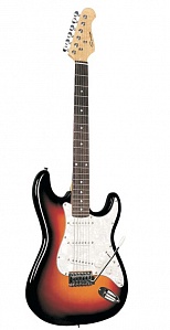 E210BS Электрогитара Caraya, цвет - коричневый санберст, Мензура 648мм, корпус - древесина твердых пород, гриф - клен, накладка грифа - палисандр, 1 громкость, 2 тона, 5-позиционный переключатель, бридж - тремоло, защитная накладка - белый перламутр, Caraya