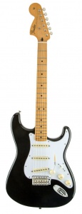 Электрогитара , форма STRATOCASTER (стратокастер).Корпуса их ольхи, отделка глянцевая. Накладка грифа клен, радиус 9.5` (241 мм). Лады: 21, Medium Jumbo. Длина мензуры: 25.5` (64.8 см). Звукосниматели: American Vintage `65 синглы (бридж, центр и нек). Переключатель 5-позиционный. Фурнитура хромированная. Струны Fender® USA 250R, NPS, (толщина .010-.046). Уникальные особенности: реверсивная голова грифа, развернутый бриджевый звукосниматель, автограф Джими Хендрикса на обратной стороне грифа