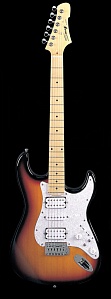 S3-2TS Электро-гитара Swing, корпус - индонезийское красное дерево, гриф - твердый клен, накладка грифа - клен, палисандр или бубинга, радиус - 241mm (9.5"), ладов - 22, размер ладов - средний (2.4mm), мензура 648 mm (25.5"), ширина верхнего порожка - 41,3mm, нижний порожек - хром, колки - Swing Die-cast Tuners, бридж - 2-point synchronized tremolo, защитная накладка - жемчуг или 3-х слойная белая, датчики SH-3N(neck), SS-1M(middle), SH-3B(bridge), 5-позиционный переключатель (1:бридж, 2 : бридж+средний, 3 : средний, 4: средний+гриф, 5: гриф), регулировка громкости, тона, два переключателя (Single/Humbucker), цвет двухтоновый санберст.