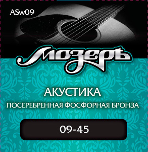 ASw09 Комплект струн для акустической гитары, посеребр. фосф. бронза, 9-45, оплетка 3-й струны, Мозеръ