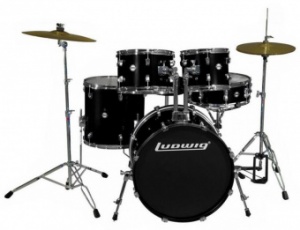LUDWIG LC170 – недорогая ударная акустическая установка для репетиционной работы начинающих и имеющих навыки игры барабанщиков. Кроме барабанов в деревянных корпусах из липы, в комплект входят тарелки крэш и хай-хэт со стойками, педаль бас-барабана, стул барабанщика. Цвет черный глянцевый.